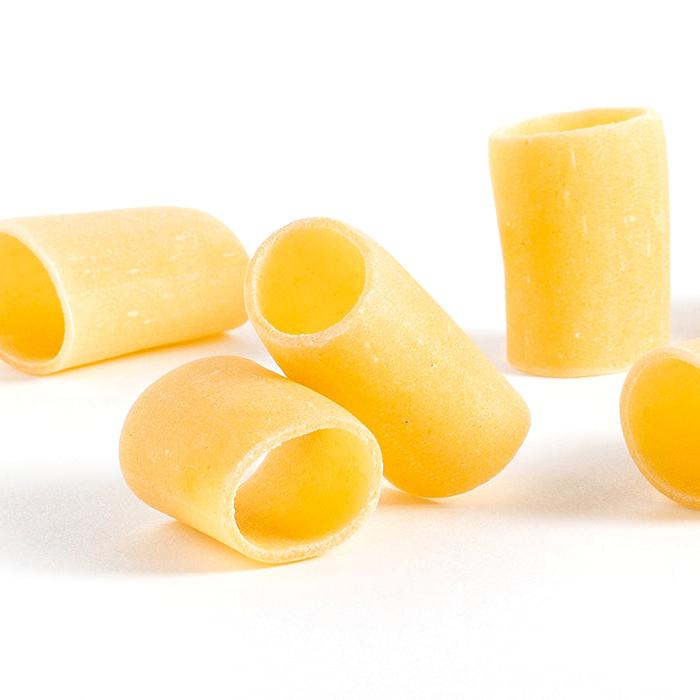 Glatte und vielseitige Form: Paccheri Lisci sind eine Pasta, die durch ihre breite, röhrenartige Form besticht und sich hervorragend für herzhafte Saucen eignet. Ihre glatte Oberfläche sorgt dafür, dass sie Saucen besonders gut aufnimmt und in jedem Bissen den vollen Geschmack zur Geltung bringt. Durch ihre stabile Struktur sind Paccheri Lisci eine ausgezeichnete Wahl für dicke Saucen, die sich perfekt in der Pasta einbetten. Vielseitig und geschmackvoll – Paccheri Lisci bereichern jedes Gericht und sind eine wahre Freude für Pasta-Liebhaber.