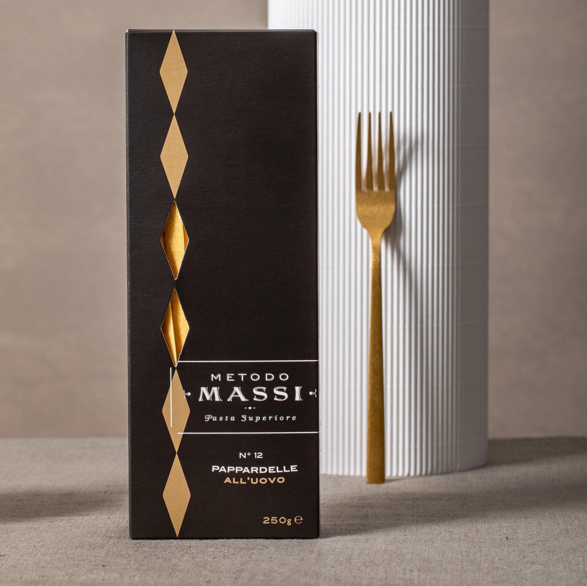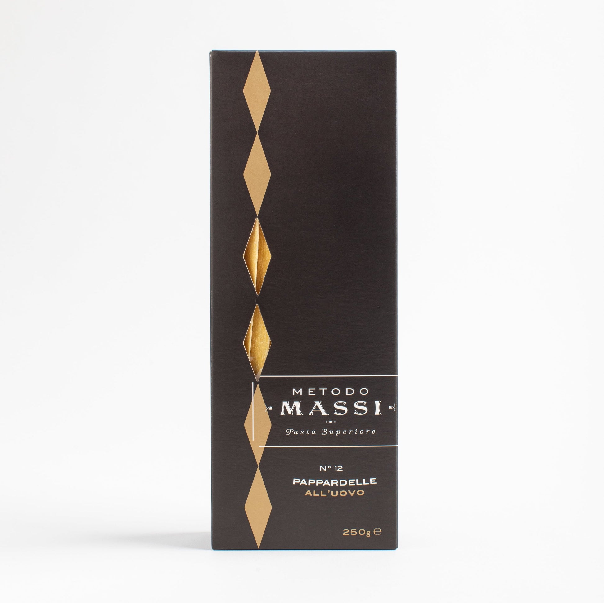 Elegante Präsentation: In einer anspruchsvollen, modernen Verpackung verpackt, ist Metodo Massi Pappardelle N°12 nicht nur ein Grundnahrungsmittel, sondern auch ein schönes Geschenk für jeden Feinschmecker.