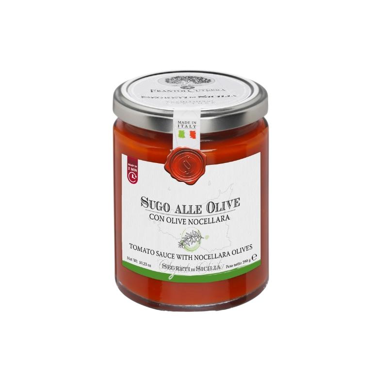 Der Sugo alla Olive ist ein typisch sizilianisches Rezept mit einem natürlich süssen und vollmundigen Geschmack. Durch das native Olivenöl extra von Frantoi Cutrera wird die Süsse der Zwiebel die natürliche Säure der Tomate ausgeglichen und so der Geschmack der Oliven hervorgehoben.